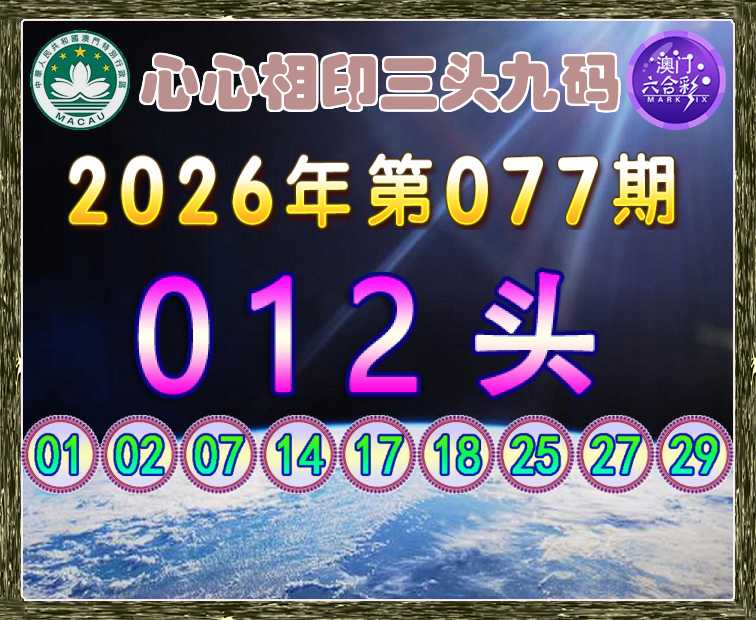 077期:【心心相印】 🚵‍♀️三头九码🚵‍♀️【012头】开:虎29