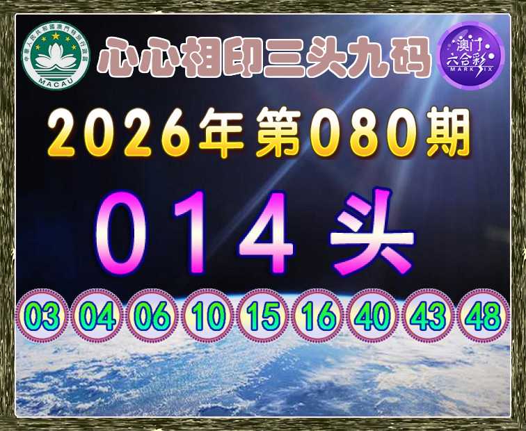 080期:【心心相印】 🚵‍♀️三头九码🚵‍♀️【014头】开:龙03