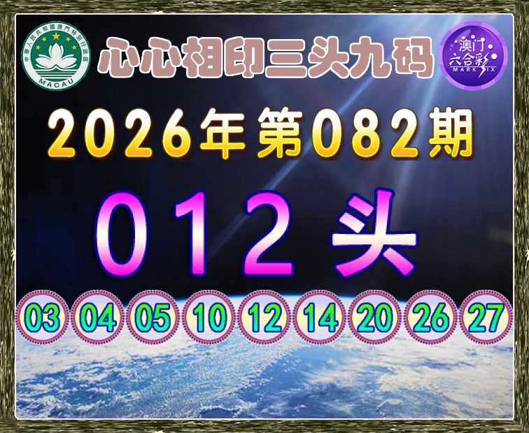 082期:【心心相印】 🚵‍♀️三头九码🚵‍♀️【012头】开:龙27