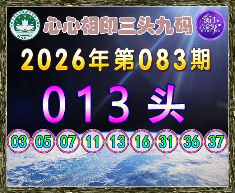 083期:【心心相印】 🚵‍♀️三头九码🚵‍♀️【013头】开:虎05
