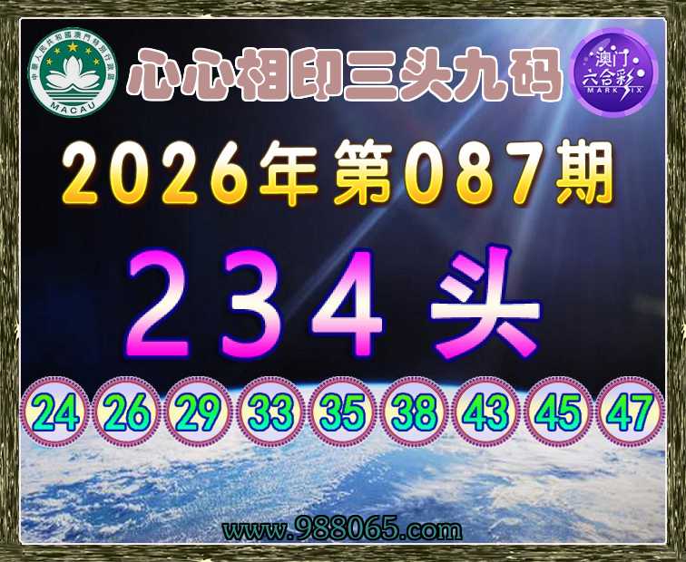 087期:【心心相印】 🚵‍♀️三头九码🚵‍♀️【234头】开:蛇26