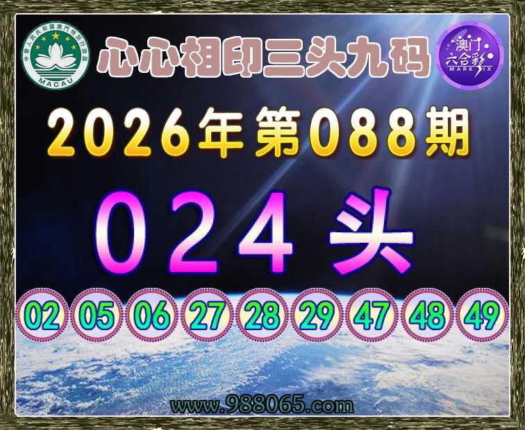 088期:【心心相印】 🚵‍♀️三头九码🚵‍♀️【024头】开:龙27