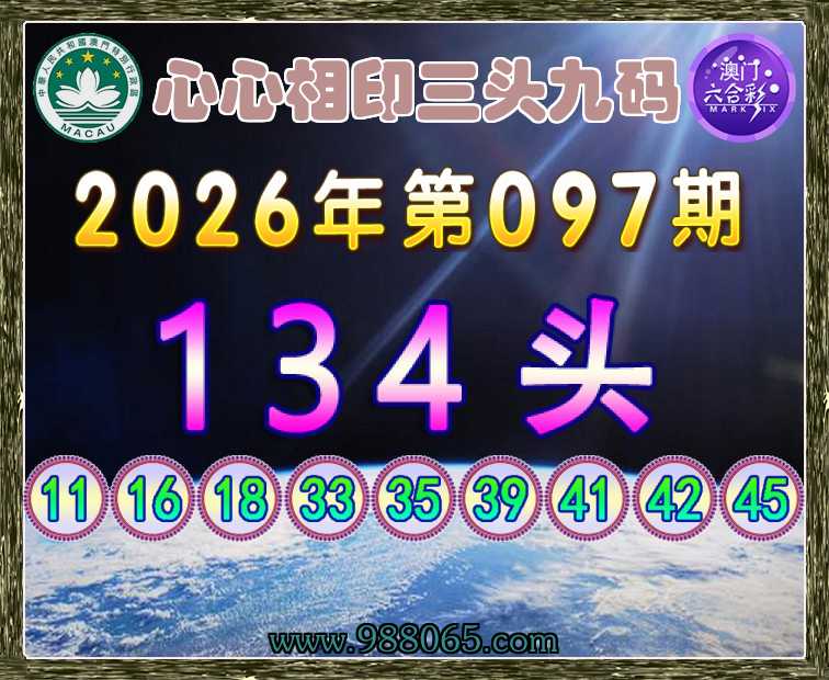 097期:【心心相印】 🚵‍♀️三头九码🚵‍♀️【134头】开:猴11