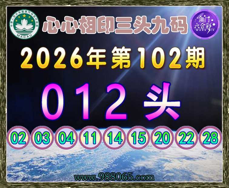 102期:【心心相印】 🚵‍♀️三头九码🚵‍♀️【012头】开:猪20