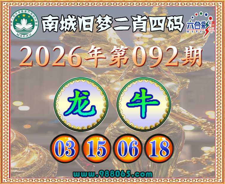 092期:『南城旧梦』 ☘️二肖四码☘️【龙】【03.15.06.18】开:牛06