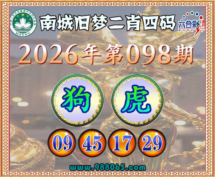 098期:『南城旧梦』 ☘️二肖四码☘️【狗】【09.45.17.29】开:虎17