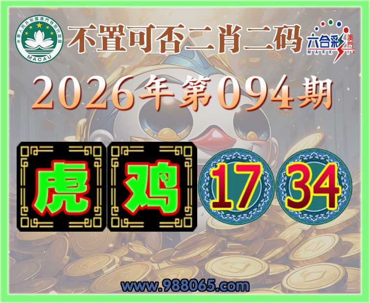 094期:〖不置可否〗 🪢二肖二码🪢【鸡】【17.34】开:虎17