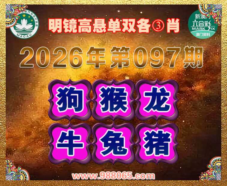 097期:〖明镜高悬〗 ✂️单双各③肖✂️【狗.猴.龙.牛.兔.猪】开:猴11准