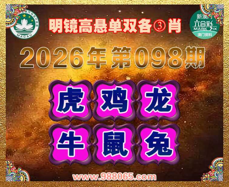 098期:〖明镜高悬〗 ✂️单双各③肖✂️【虎.鸡.龙.牛.鼠.兔】开:虎17准