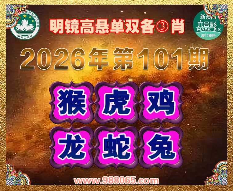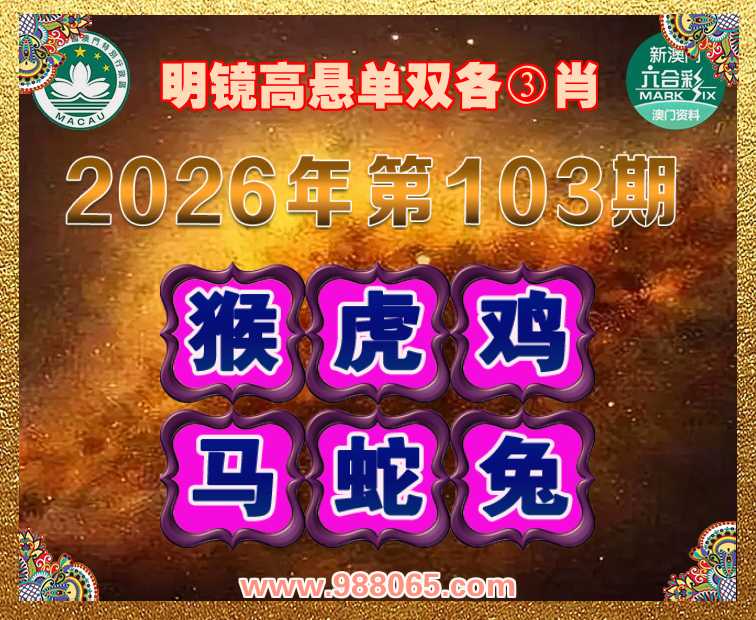 103期:〖明镜高悬〗 ✂️单双各③肖✂️【猴.虎.鸡.马.蛇.兔】开:牛06错