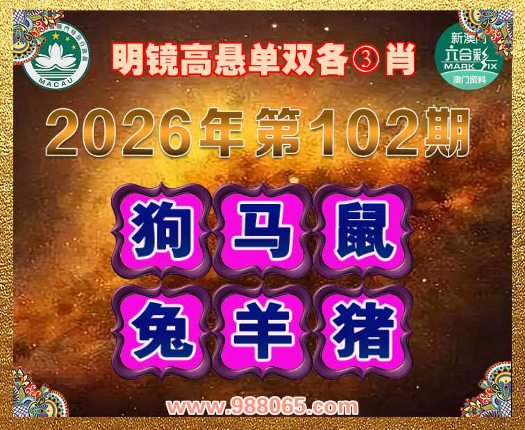 102期:〖明镜高悬〗 ✂️单双各③肖✂️【狗.马.鼠.兔.羊.猪】开:猪20准