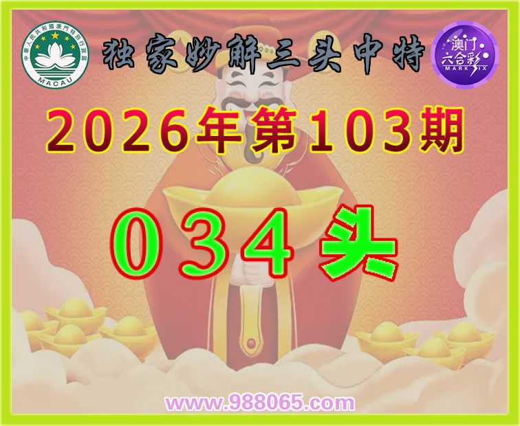 103期: ♣️『独家妙解』 ♣️三头中特 ♣️【0.3.4】开:06准