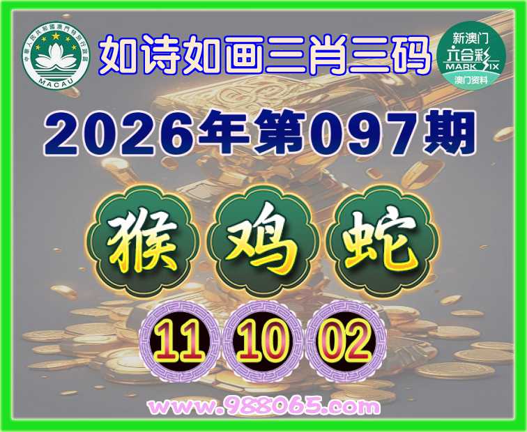 097期:〖如诗如画〗三肖三码⚽【鸡蛇】【11.10.02】开:猴11