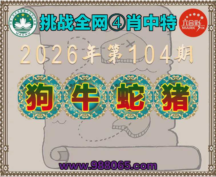 104期:〖挑战全网〗 ✂️④肖中特✂️【狗.牛.蛇.猪】开:00准